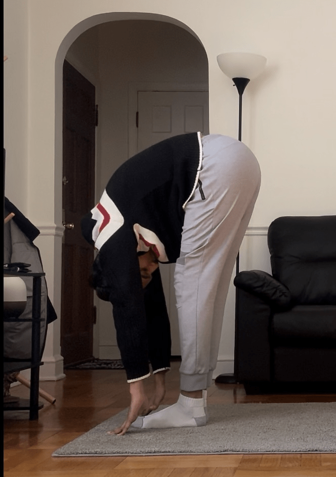 Position 3: पादहस्तासन किंवा हस्तपादासन (Hands touching to foot pose)