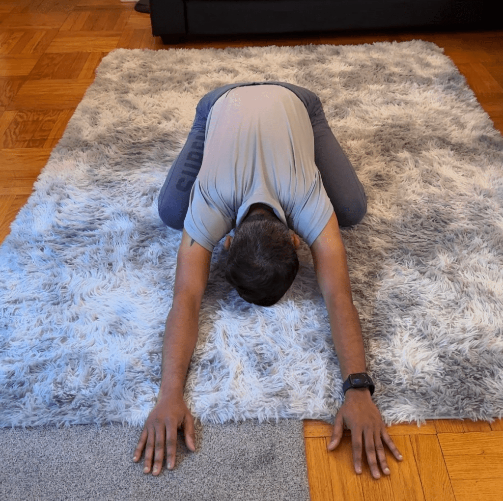 Balasana is an excellent posture for calming the mind and reducing stress and anxiety. Deep and slow breathing helps calm the mind. It also gives a gentle stretch to the back, shoulders, and spine muscles, helping to relieve tension and stiffness.